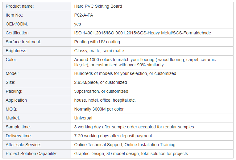 PVC-Sockelleiste der Stearinsäure-Serie